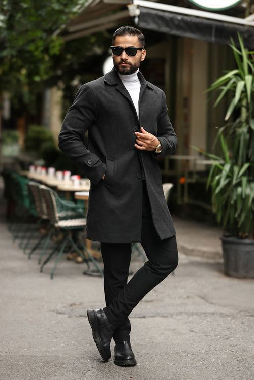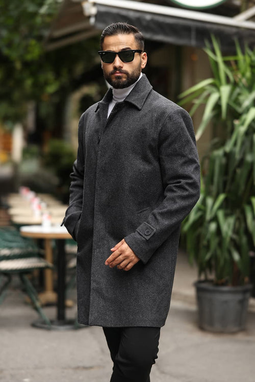 Erkek Antrasit Kruvaze Kaşe Kaban - Kod:2507